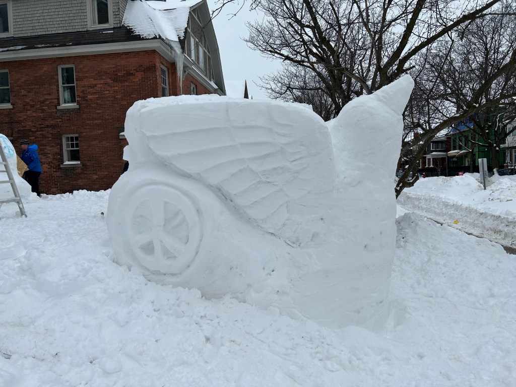 James Cook’s art is spontaneous and even he can’t fully predict what his own entry will be. It could follow a theme chosen by the event that he is sculpting for, or a controversial media subject. Or he might develop a theme inspired by a happenstance word or action of someone else. Or the theme could be based on his own experiences.