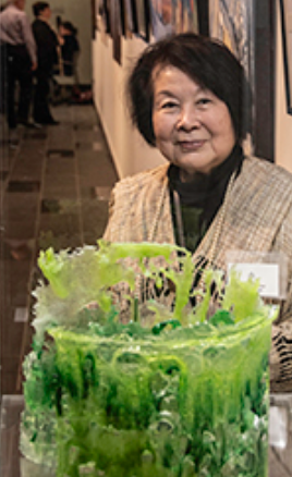 As member of the Royal Canadian Academy of Arts, and Graphic Designers of Canada, Eiko continued in her graphic design business in Ottawa. She also began to develop her skills in working with glass, a process totally different from print media, in which the final product closely resembles the final sketch. She explains that working with pâte de verre is a collaborative process between the artist and the glass. In 2021, Eiko’s work was recognized by the Pattie Walker Memorial Award for excellence in architectural glass from Crafts Ontario and has also received an Ontario Arts Council Individual Craft Project Grant.